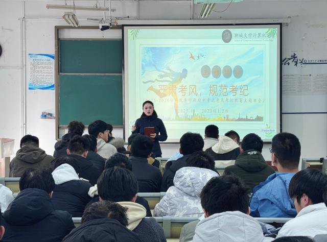 为进一步严肃考风考纪,引导学生树立诚信考试意识,杜绝考试作弊行为,营造公平、公正、诚信的考试氛围,计算机学院各班级召开期中考试考风考纪主题教育班会。