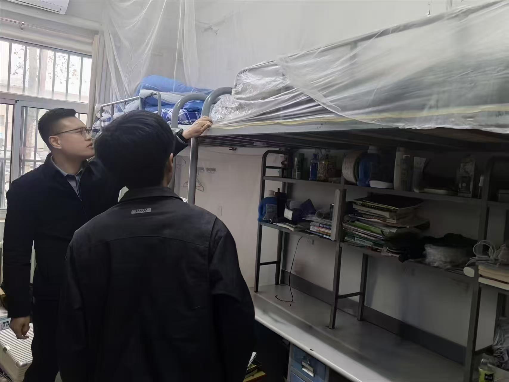 检查过程中,老师们严格对照宿舍安全管理标准,对每一间宿舍进行全面排查。重点对宿舍水电线路、消防器材及基础生活设施进行了细致排查,仔细查看了用电设备规范使用情况、消防通道畅通情况,对发现的安全隐患提出整改意见,并且明确整改时限,确保隐患清零。同时,针对期末离校前的宿舍卫生情况,老师们也逐一查看了宿舍内务整理、垃圾清运等细节,引导同学们养成良好的生活习惯,共同维护整洁舒适的住宿环境。最后,老师们还反复叮嘱同学们,离校前务必全面检查并切断宿舍电源、关闭水龙头、锁好门窗,妥善保管个人电脑、手机等贵重物品,提醒大家在返乡途中注意交通安全,遇到问题及时与学院老师沟通联系。