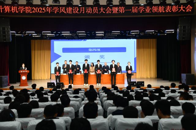 为落实学校学风建设相关要求,弘扬学院“厚德和谐、砺学创新”的院训精神,营造优良的育人环境和求真的学习氛围,切实提高人才培养质量,10月23日,计算机学院于西校区礼堂召开了2025年学风建设月动员大会暨第一届学业领航表彰大会。