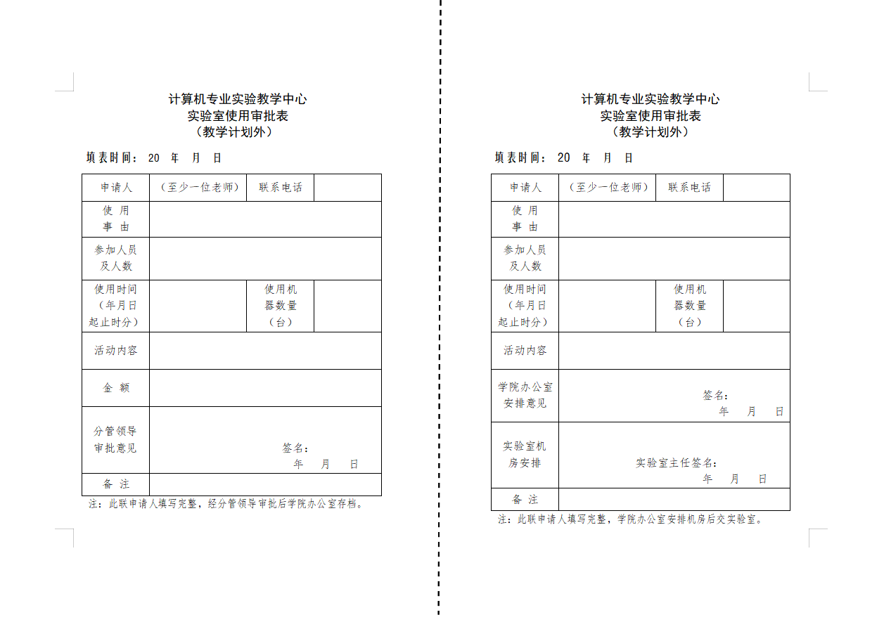 » 计算机专业实验教学中心实验室使用申请表(下载链接见最下方)