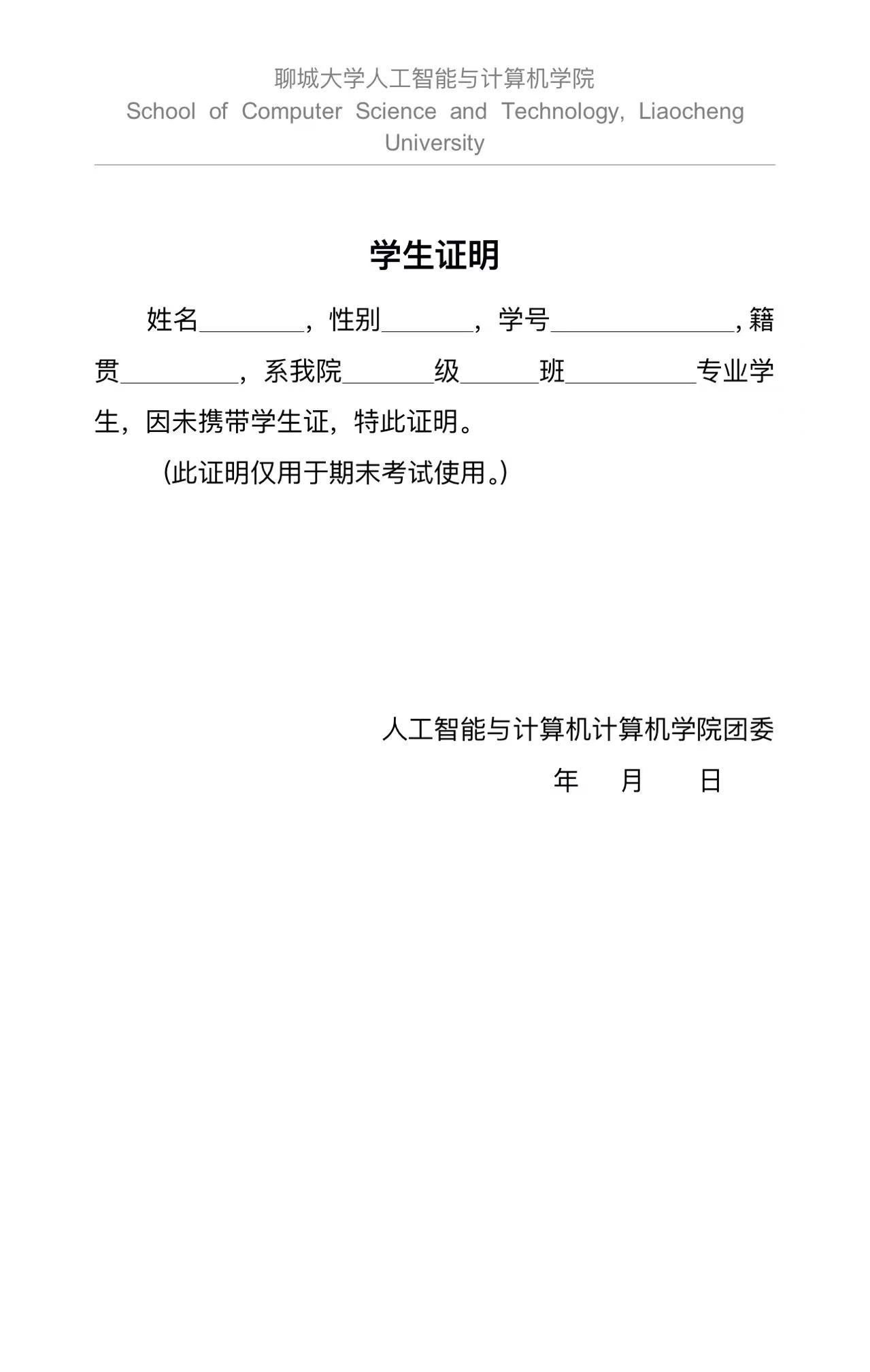 学生证明(模版)