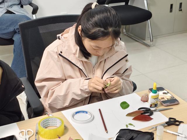 活动现场,同学们以树枝为骨架、花瓣为点缀,自主裁剪、粘贴、装饰,把春日的生机和创意融入每一件作品里。大家认真修剪树枝、搭配花瓣色彩,用装饰配件点缀细节,用自然材料做出了风格各异的手工作品。在专注创作的过程中,同学们暂时抛开了学习和生活的焦虑,在动手的过程中舒缓身心、释放压力,现场氛围轻松又治愈,满是创作的快乐和春日的暖意。活动尾声,随着最后一件作品完成收尾,同学们有序整理活动材料,本次手工创作心理活动在温馨治愈的氛围中圆满落幕。