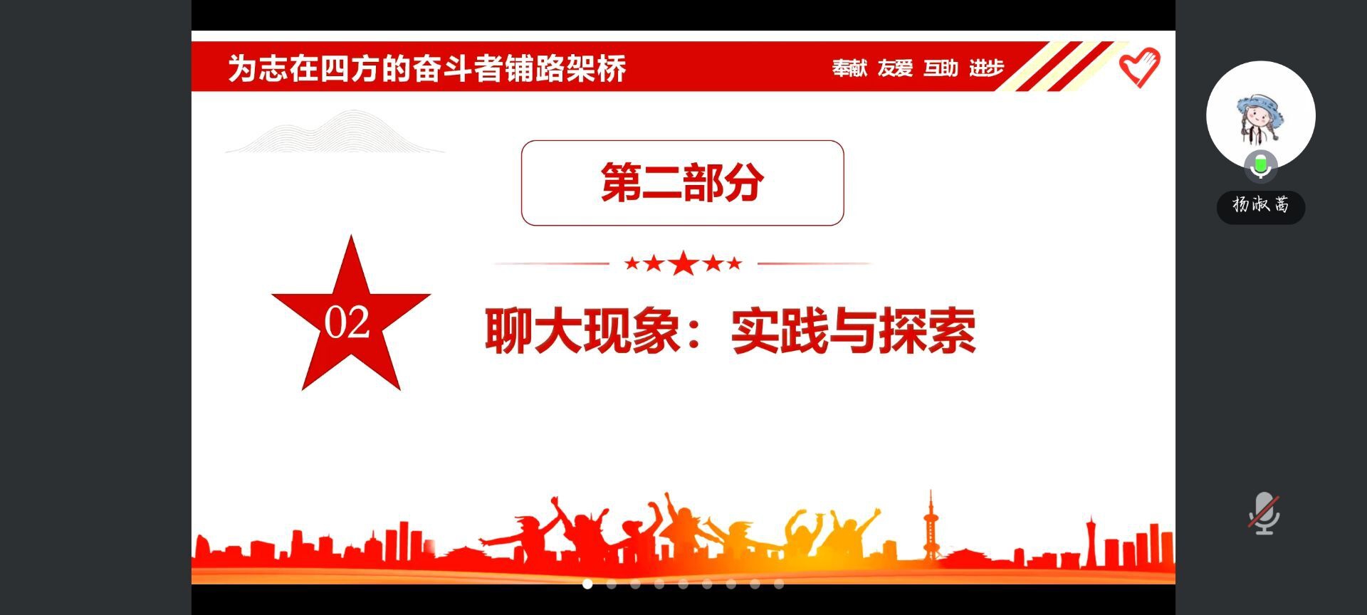 宣讲活动以“为志在四方的奋斗者铺路架桥”为主题,系统呈现西部计划的时代价值与实践路径。主讲人以“青年航向:遵循与指引”开篇,深入解读习近平总书记对青年志愿者的殷切寄语,阐释“好儿女志在四方,有志者奋斗无悔”的精神内涵。在“聊大现象:实践与探索”环节,活动全面展示了我校学子扎根西部、服务基层的生动图景,通过详实的数据与典型案例,呈现志愿者们在教育帮扶、技术普及、民族团结等领域取得的丰硕成果。活动特别设置“海内存知己,天涯若比邻”云端连线环节,往届参与西部计划的人工智能专业志愿者分享他们在边疆地区开展智能教育应用、搭建基层信息系统、服务乡村振兴的亲身经历,讲述从校园学子到西部建设者的成长蜕变,展现“奉献、友爱、互助、进步”的志愿精神与专业能力的深度融合。