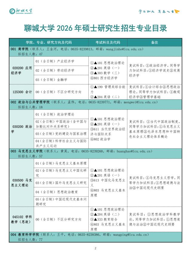 » 2026硕士研究生招生专业目录