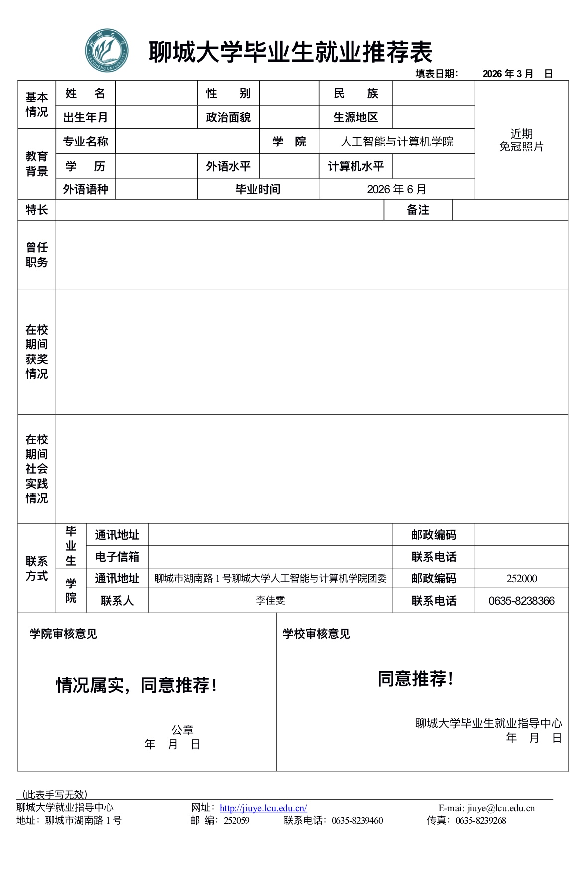 » 毕业生就业推荐表